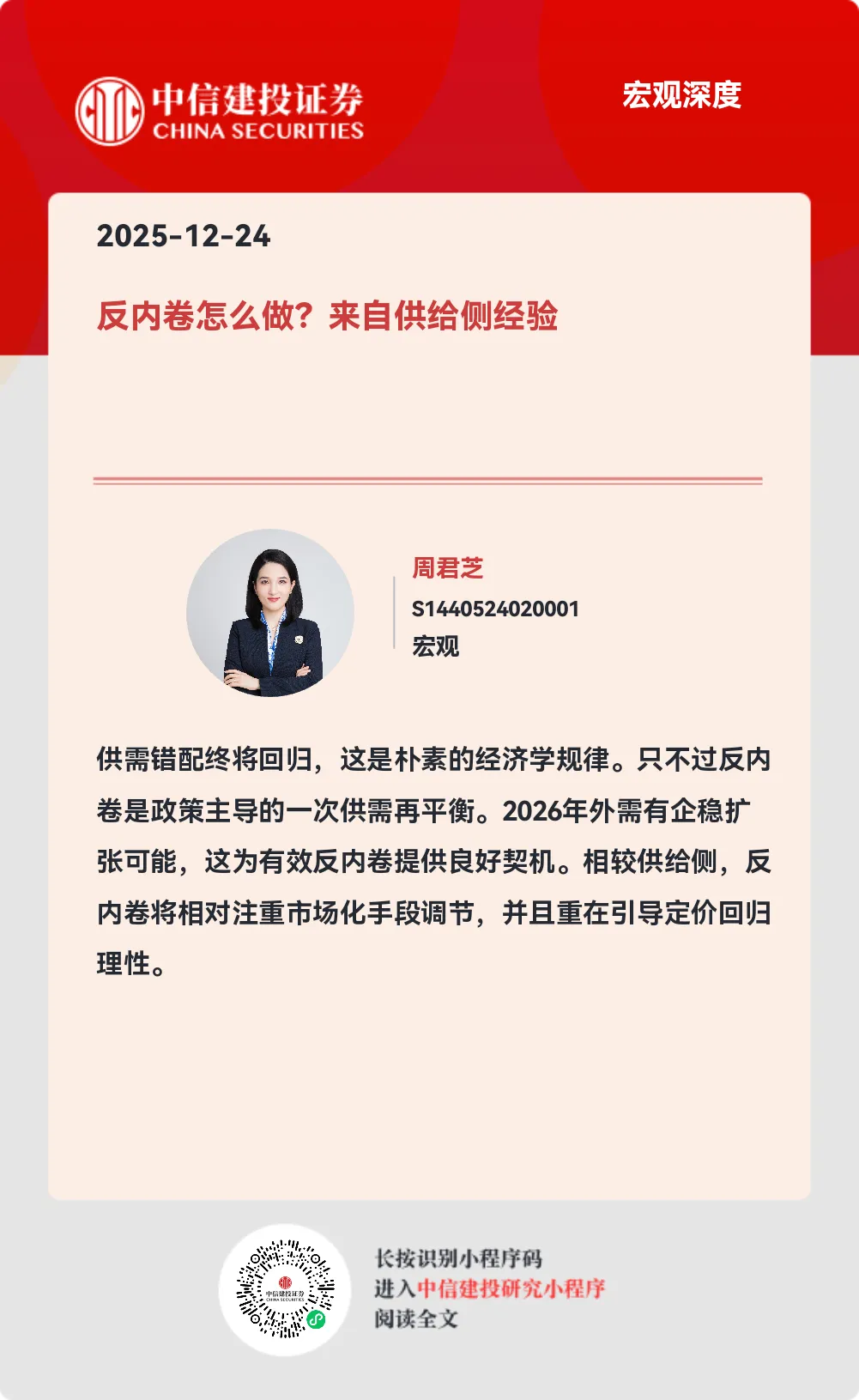 供需错配终将回归,这是朴素的经济学规律。只不过反内卷是政策主导的一次供需再平衡。2026年外需有企稳扩张可能,这为有效反内卷提供良好契机。相较供给侧,反内卷将相对注重市场化手段调节,并且重在引导定价回归理性。