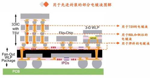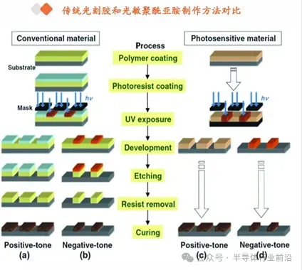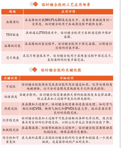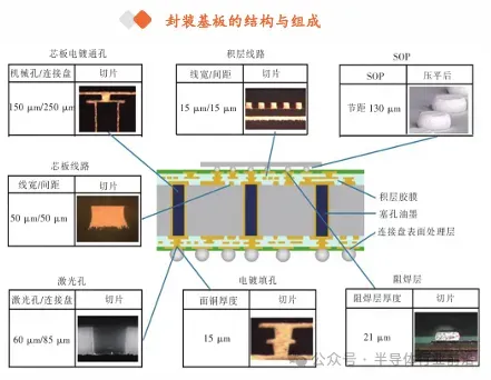摘要:由于半导体行业体系庞大,理论知识繁杂,我们将通过多个期次和专题进行全面整理讲解。本专题主要从先进封装深度报告——材料篇进行讲解,让大家更准确和全面的认识半导体地整个行业体系。我们分为半导体知识、半导体“芯”闻几个模块,欢迎各位大佬交流学习随着AI应用场景不断拓展,中国大模型企业级市场呈爆发式增长。据FROST&SULLIVAN《2025中国GenAI市场洞察》数据显示,2025年上半年,我国 企业级大模型市场日均调用量已达10万亿tokens,较2024年下半年的2.2亿tokens实现约363%的增长,呈现出爆发式放量态势。这一跃升不仅意味 着市场需求的全面释放和持续攀升,也伴随着算力与存储等基础资源消耗的显著增加,更清晰地表明大模型正快速走出试点验证期,进入规模化落 地的新阶段。在算力需求的持续推动下,AI芯片市场规模与占比不断增长。根据TrendForce 的预计,从AI芯片在整个先进工艺中的产能占比来看 ,2022年的占比仅有2%,2024年预计将会达到4%,预计到2027年占比将会达到7%,其对整个晶圆代工产业的产值贡献正在快速增长。为满足AI大模型对算力的极致需求,并突破传统芯片面临的“存储墙”、“面积墙”和“功耗墙”等瓶颈,先进封装通过高密度集成,成为提升芯 片性能的关键路径。先进封装主要通过Bump、RDL、TSV、混合键合等工艺及技术,实现电气延伸、提高单位体积性能,助力芯片集成度和效能的进 一步提升。先进封装工艺的演进对设备提出更高要求,相较于传统封装,其核心差异体现在两大维度:一是传统封装设备持续升级,例如,为适应先进 封装更精密的结构需求,贴片机精度显著提升,划片技术从刀片切割转向激光加工,塑封工艺也向压塑演进等;二是新增前道制程设备,由 于倒装、RDL重布线层及TSV硅通孔等技术的引入,薄膜沉积、光刻、刻蚀等传统前道装备开始在封装环节应用。2.1 封装基板:互连价值日益凸显,玻璃基板全新成长互联需求与技术要求演进,封装形式多样化驱动基板需求分化 基板上承接芯片,实现芯片管脚的扇出布局并提供物理保护;下互连主板,在芯片与主板 之间起桥梁、互连与扩展作用。由于芯片布线密度高于PCB,二者无法直接互连,封装基板 作为“桥梁”的价值由此凸显。当前半导体封装形式在不断地拓宽和迭代中,不同封装方 式对基板的种类、规格要求各异,新兴封装技术对基板性能提出更高标准,推动基板制造 工艺向更复杂、更多元的方向演进,形成差异化的产品体系与技术路径。 封装基板的分类维度丰富,涵盖导电层数(单面/双面/多层)、材料类型(陶瓷/有机)、耐折 性(刚性/挠性)、芯板结构(有芯/无芯)、表面处理方式(OSP/ENEPIG/电镀软金)等多个维度。 业界常用的分类方法是依据封装方式将基板划分为单块与单元两大类。其中,单块倒装芯 片封装基板技术能力大幅跃升,涌现出FCBGA基板内置硅桥(EMIB)、硅电容,以及多层布线 芯板、玻璃芯基板等创新方案;单元倒装芯片封装基板经历颠覆性变革,ETS工艺或aSAP工 艺逐步替代pSAP实现技术迭代,封装形式从FCCSP的叠层封装(PoP)演变为FOPLP或FOWLP, 技术创新活跃度较高;单元引线键合封装基板则保持相对稳健的发展态势,创新技术较少, 复杂功能需求逐步向单元倒装芯片封装技术转移。封装基板的结构与组成 面向2.5D、3D等先进封装技术需求,基板正朝着大尺寸、多层数、高密度方向加速演进,线路、孔径、微凸块间距持续缩 小,材料性能要求显著提升,包括更低的热膨胀系数、更高的玻璃化转变温度、更小的介电常数等。基于此,玻璃芯基板 被视为下一代FCBGA基板的战略方向,英特尔、Absolics、DNP、凸版、富士通等全球领先企业均已布局研发,目前整体处 于试制打样阶段。2.2 PSPI:光敏特性简化工艺流程,多场景渗透彰显技术价值光敏聚酰亚胺(PSPI)是在传统聚酰亚胺基础上引入光敏基团改性的高分子材料,兼具聚酰亚胺的优良介电性能、机械强度、耐热性与光刻胶的感光特性。 因此,其无需涂覆光刻胶阻隔层,便可直接通过光刻工艺形成微米或亚微米级图案,相比传统PI+光刻胶组合减少2-3道工艺步骤,降低10%以上成本,提 升生产效率。当前,PSPI已成为RDL再布线层(Redistribution Layer)、再布线互连、绝缘介质层等关键环节的材料选择,在Fan-out、2.5D/3D封装、 HBM(高带宽存储)等高端芯片领域应用广泛,成为延续芯片性能提升的关键路径。 多场景深度渗透,适配HPC、存储、汽车等多元化封装需求PSPI在先进封装中的应用场景呈现多元化特征,深度契合不同芯片类型的封装需求。在2.5D/3D 封装技术中,PSPI作为硅互连基板(Interposer)或硅通孔(TSV)的绝缘层与缓冲介质,填充微小 通孔并保护金属互连,有效降低因热膨胀不匹配导致的应力,确保互连可靠性。在Fan-Out封装 及扇出晶圆级封装(FOWLP)中,PSPI作为RDL绝缘介质与通孔保护层,实现芯片I/O焊盘的高密度 重分布,并支撑异构集成架构。PSPI适配多种高端芯片封装需求,应用于高性能计算、移动终 端、存储芯片、汽车电子等领域,多场景渗透彰显PSPI的技术适配性与市场价值。 国产替代加速突破,技术壁垒与规模化生产仍是核心挑战 PSPI技术壁垒较高,当前日美厂商垄断高端市场,头部企业包括日本东丽、美国HDM、日本富士 胶片、日本旭化成等 ,主要供应28nm以下制程产品,国内进口依赖度较高。值得注意的是,正 性低温固化光敏聚酰亚胺(p-PSPI)在集