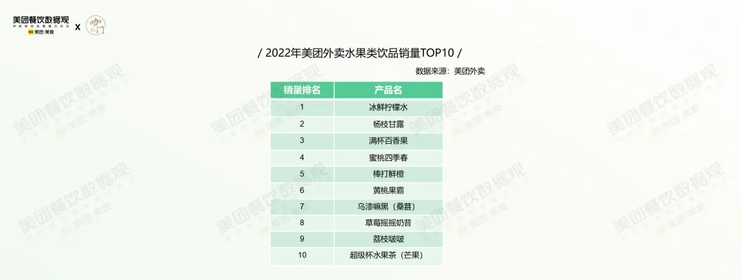 2022年水果类茶饮销量排行:冰鲜柠檬水、珍珠奶茶、杨枝甘露位列前三;