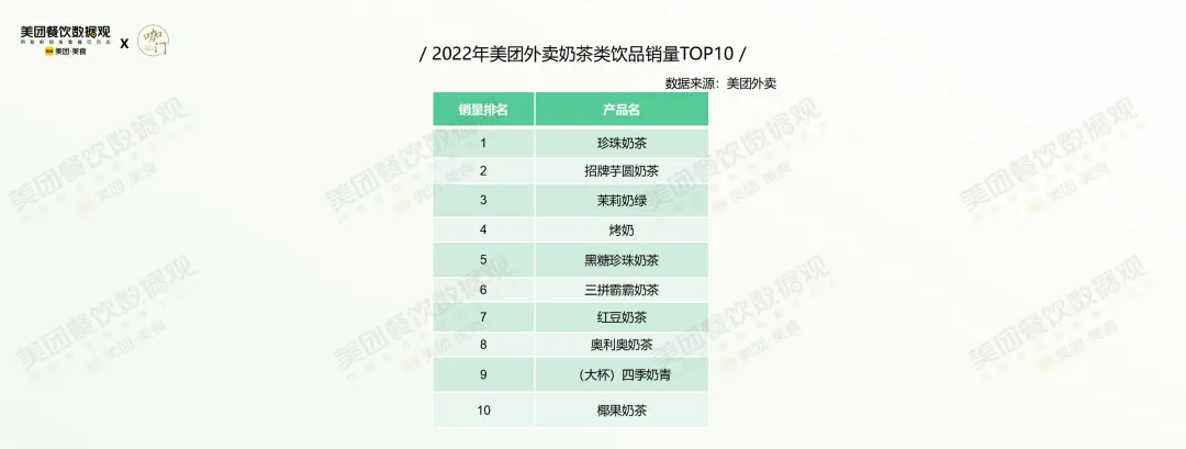 2022年奶茶类茶饮销量排行:珍珠奶茶、招牌芋圆奶茶、茉莉奶绿位列前三。
