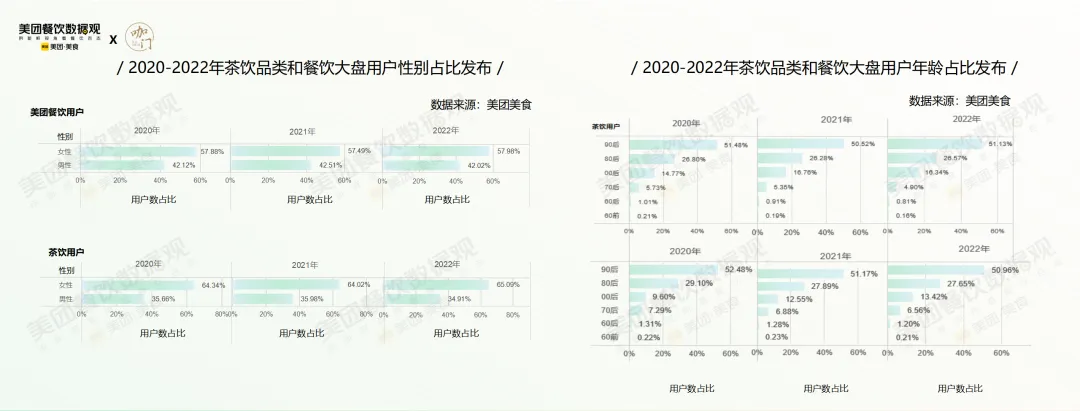 相比餐饮大盘用户稳定的男女消费比例,茶饮用户近三年女性用户占比有所增长。