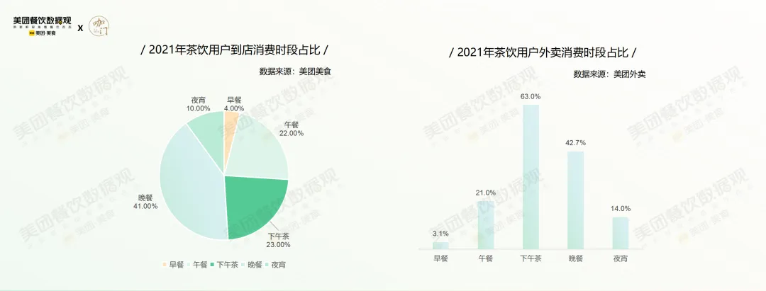 2. 外卖订单下午茶占6成,到店消费高峰在晚餐
