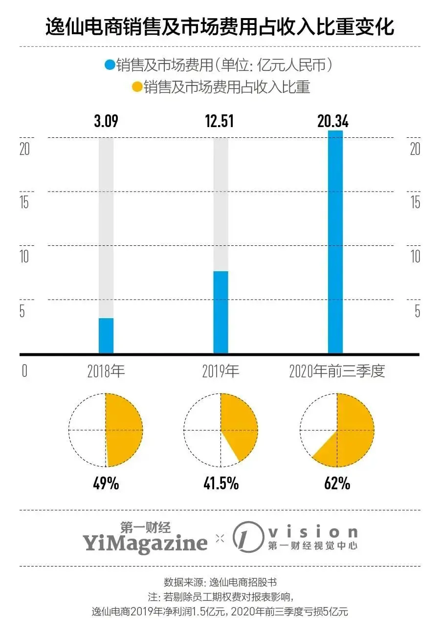 2018年逸仙电商营销费用占其总收入的比例为48.7%,2019年为41.3%。