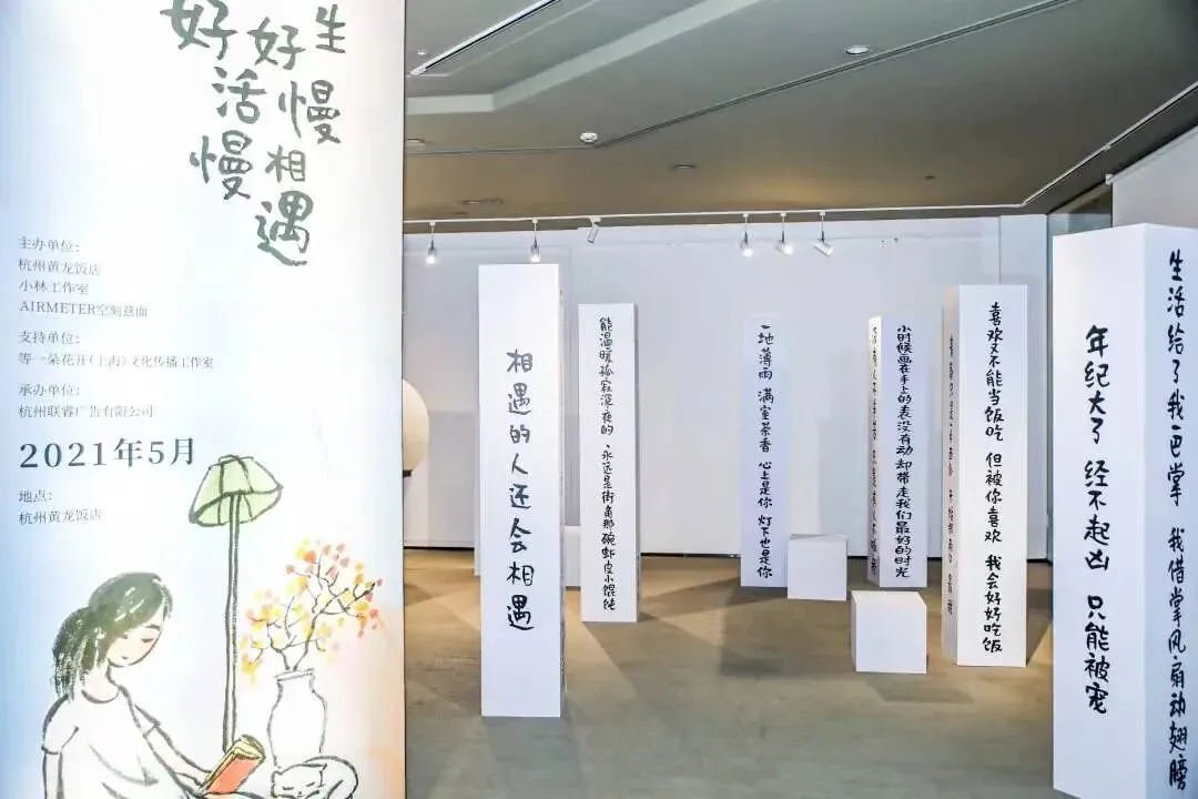 作为本次活动的承办团队,Forgood负责了本次漫画展创意策划、策展布置及线上宣传等工作。我们将本次活动主题定为“好好生活,慢慢相遇”,以此来输出黄龙饭店优雅有内涵的生活方式,以及对日常点滴怀揣热爱的生活态度。