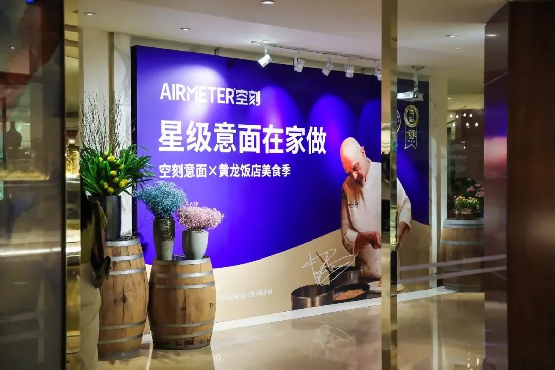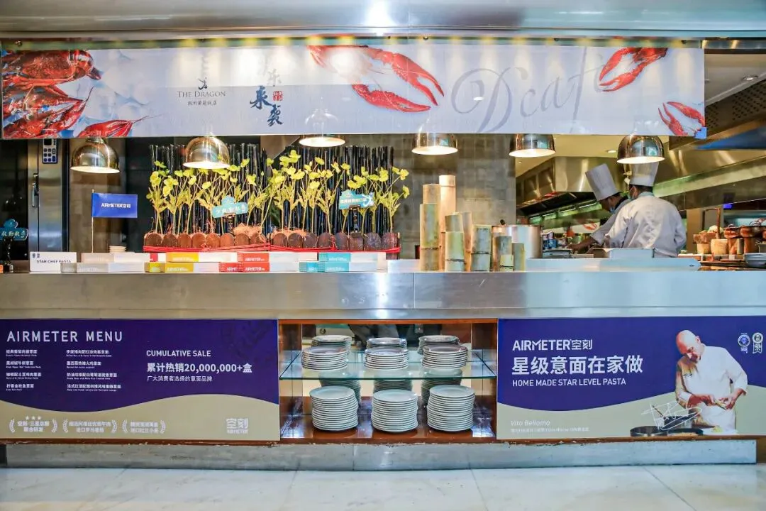 活动当天,AIRMETER空刻意面成功入驻了黄龙饭店D’café自助餐厅,在黄龙饭店夏日美食季与大家共赴一席浪漫晚宴。
