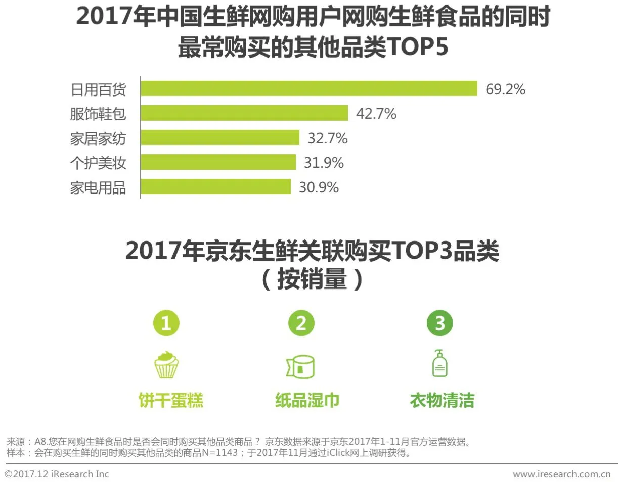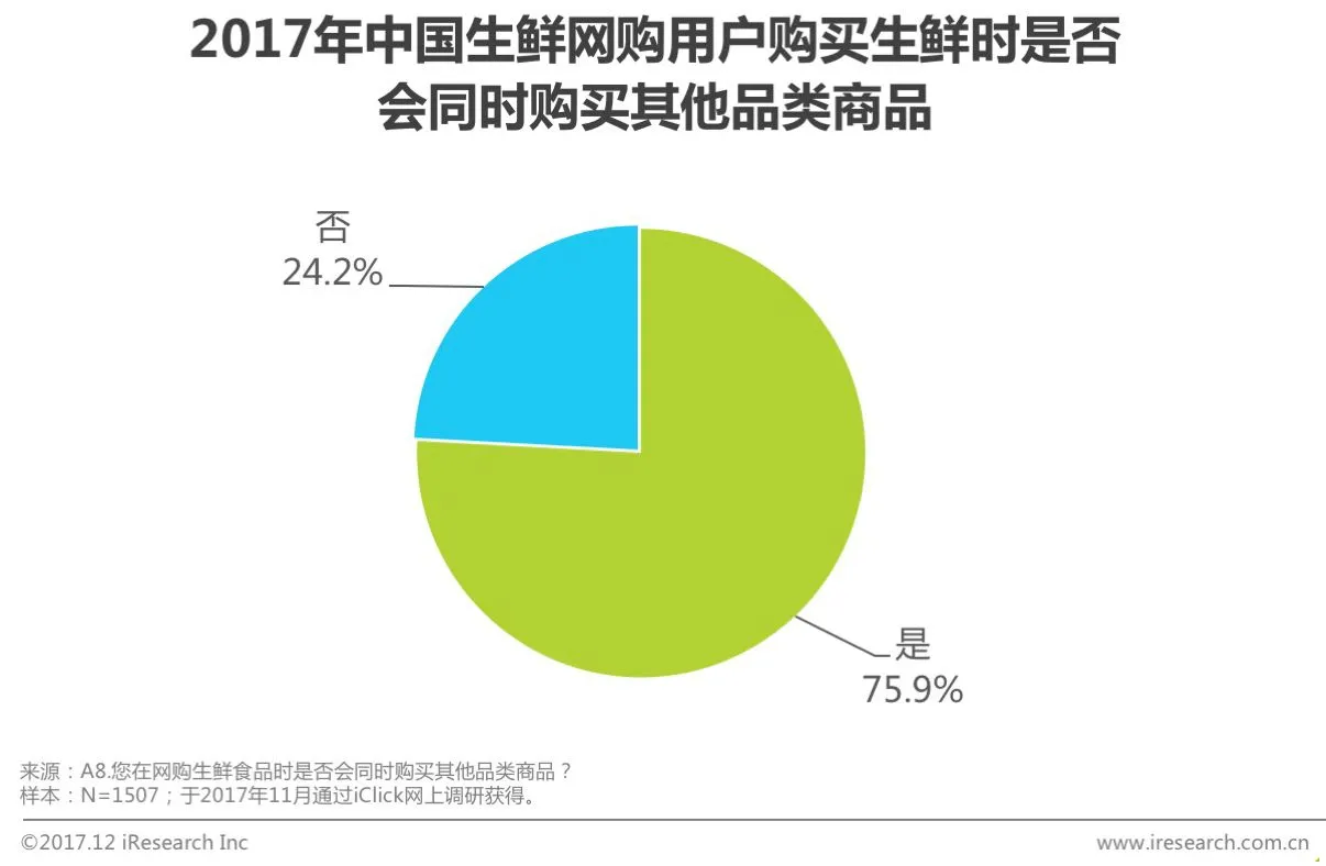 超七成用户在网购生鲜食品的同时会购买其他品类的商品