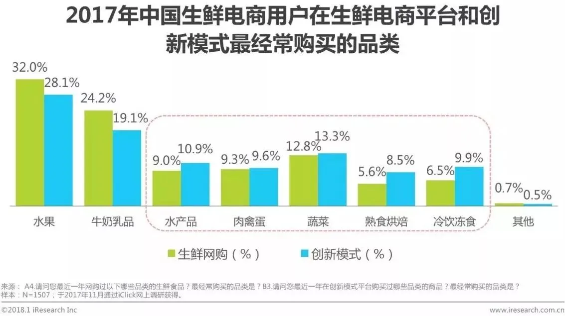 在创新模式购买水产品、肉禽蛋及蔬菜等品类用户占比更高