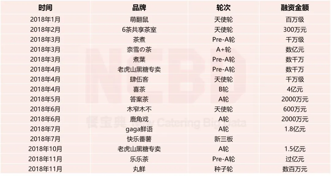 2018新茶饮行业品牌融资情况