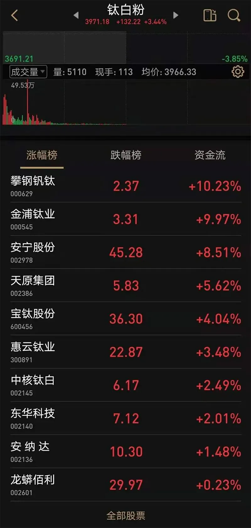 钛白粉板块再度走强