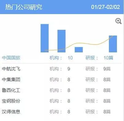 打开萝卜投研,萝卜君发现,最近一周(1月27日-2月2日),中国国旅一举成为最受卖方老师钟爱的A股上市公司,一共产出了13篇研报。