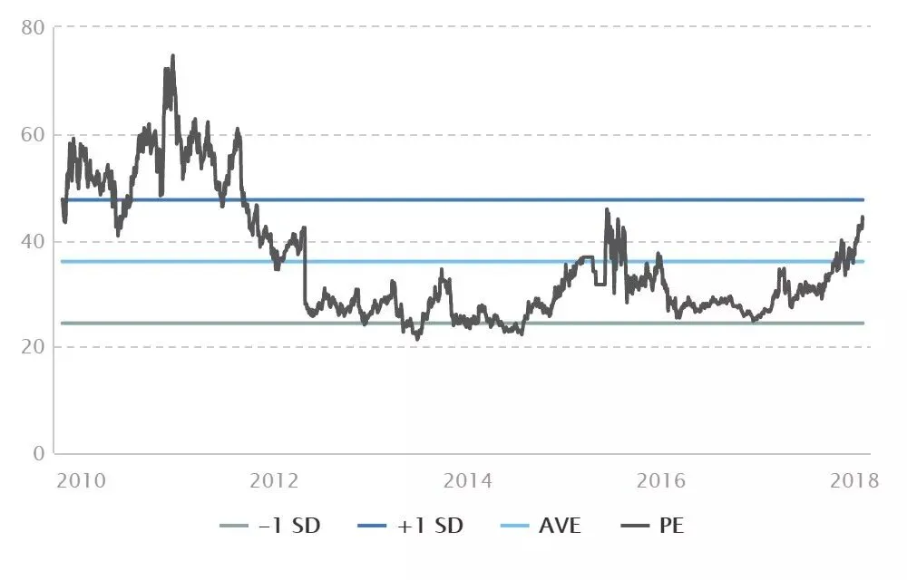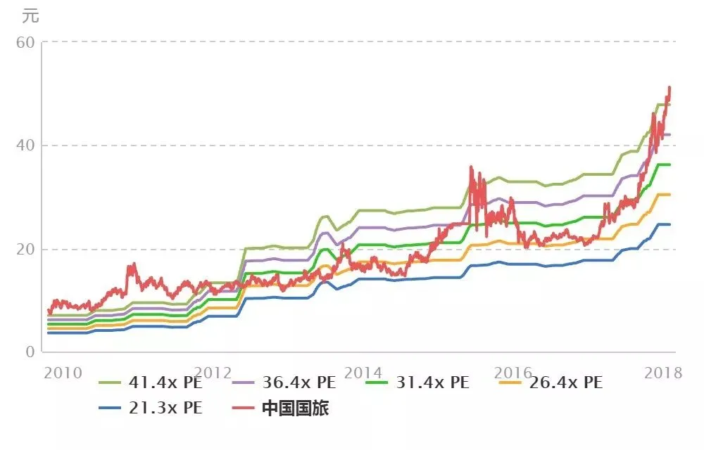 上图显示,目前中国国旅PE虽高于其上市以来的PE均值,但离历史极值仍相距甚远。