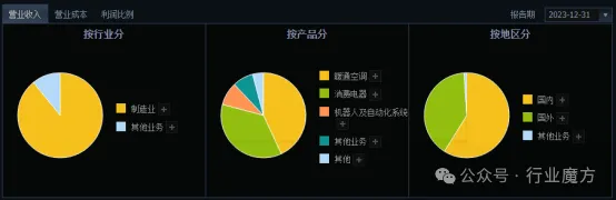 2023年,美的集团实现营业收入3720.37亿元,同比增长8.18%;净利润337.2亿元,同比增长14.1%;基本每股收益4.93元,创下历史最佳经营业绩。分区域来看,美的集团2023年国内营业收入约2211亿元,同比增长9.87%,毛利率约26.04%;海外营业收入约1509亿元,同比增长5.79%,毛利率约27.16%。
