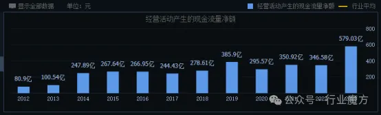 2012-2023年,美的集团净利润持续增长,11年来从未负增长,美的集团公司成长能力属于顶尖级别;净利润从2012年的61.41亿元增长到2023年的337.45亿元,增加了449%,增长幅度巨大;另外,美的集团的经营活动产生的现金流净额每一年都大于净利润,说明美的集团所赚的净利润赚的是真金白银,有很高的含金量。