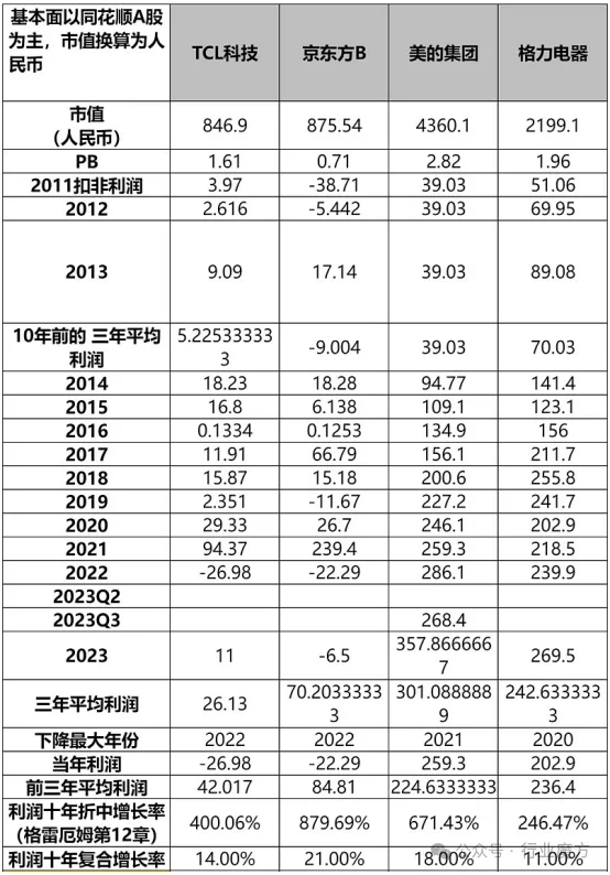 美的电器的财务报表,真的是美的享受,堪称一家伟大的公司,未来成就可能不亚于美国通用公司,因为10年来,美的集团每年的利润都在稳定地增长,没有一年业绩下降,就好像龟兔赛跑一般,10年前美的集团只有格力电器利润的一半,但2020年以来,格力就再也追不上美的了。
