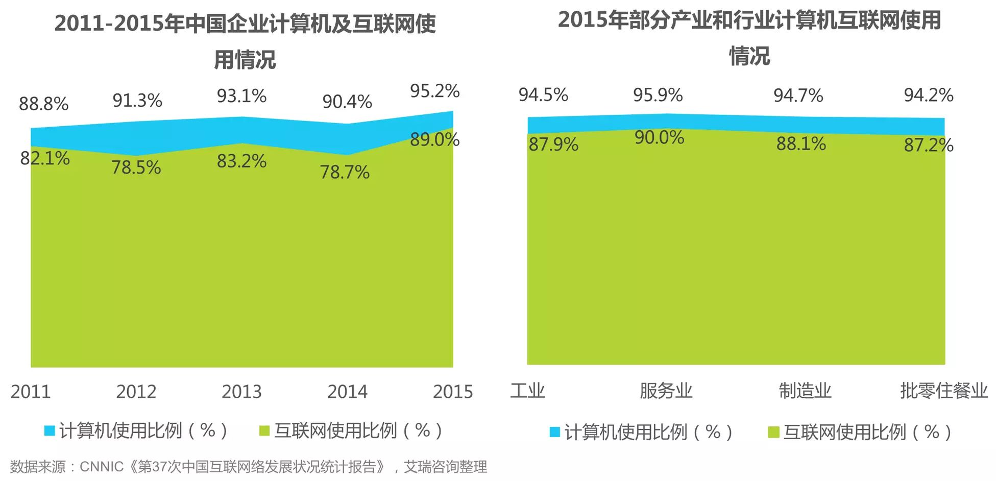 截至2015年底,中国使用互联网办公的企业已经达到90%,互联网应用基础已经基本夯实。