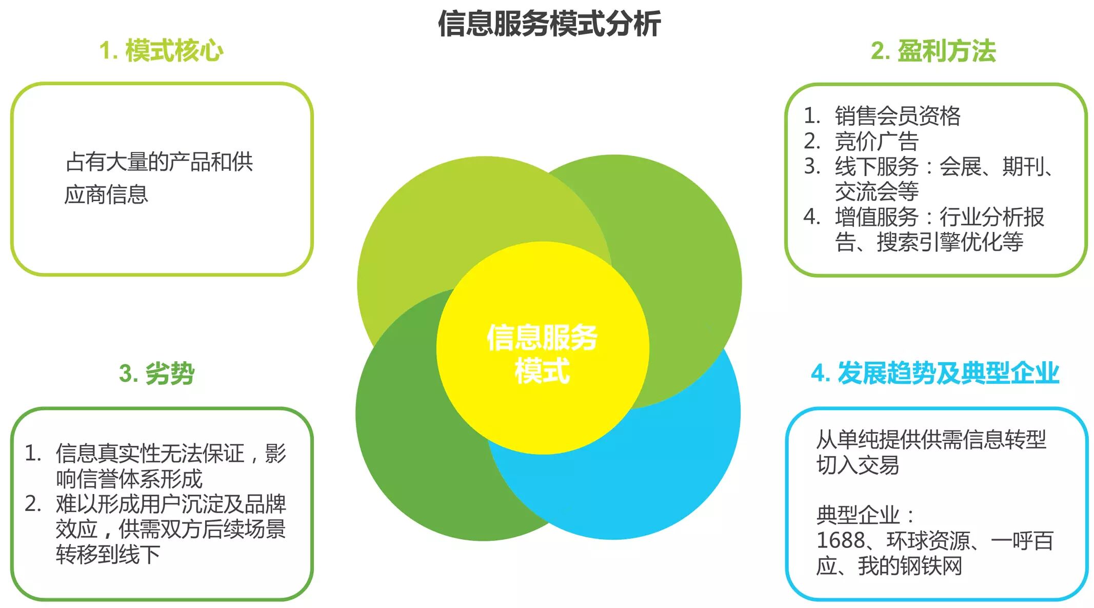 信息服务模式通过信息连接供需双方,为其提供交易机会