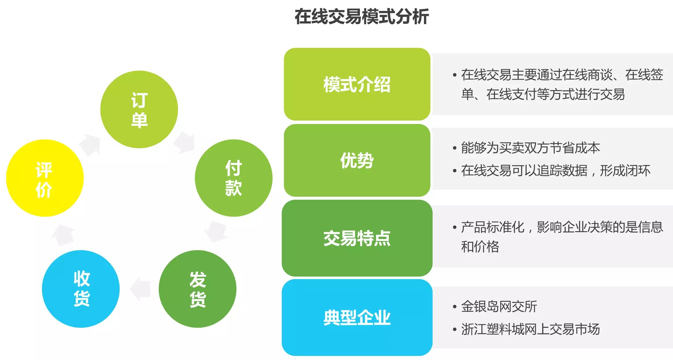在线交易模式通过网站线上完成从订单到评价各环节,实现交易闭环