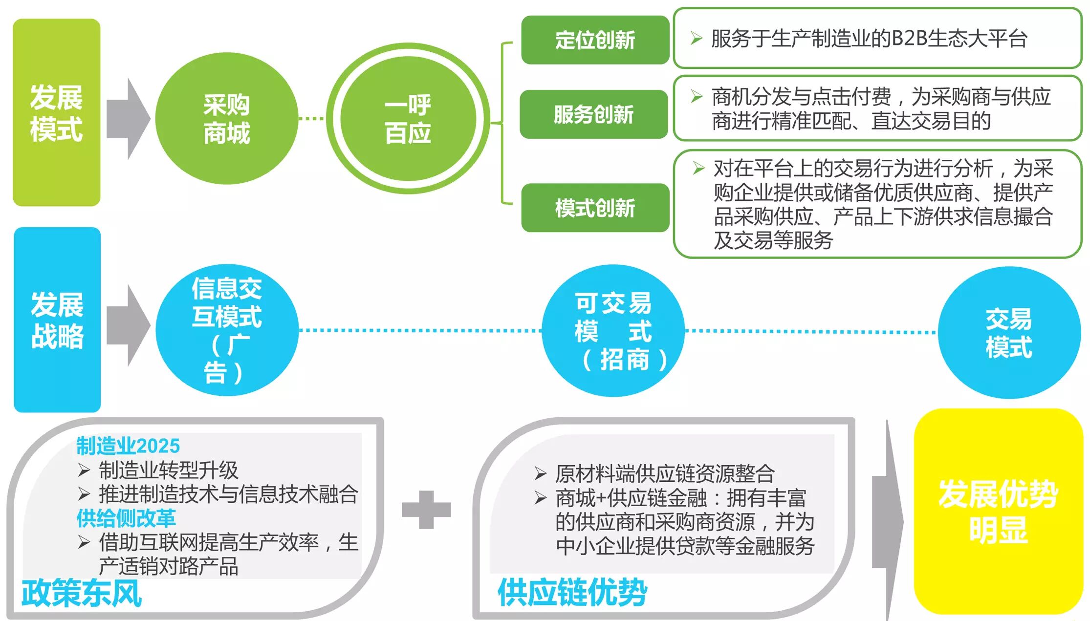 一呼百应服务于生产制造型中小企业,致力于打通采购供应链上下游关系。这种模式直击企业采购灰色地带,大力降低企业采购成本,提高企业运作效率,为企业创造了更大的利润。