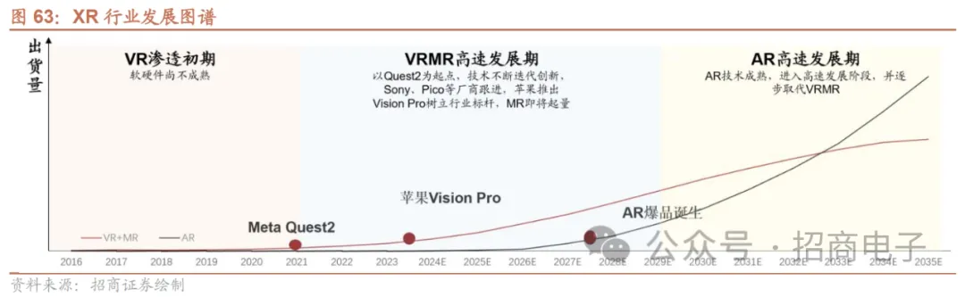 4、XR:苹果Vision Pro发售在即,将引领XR产业趋势目前XR行业正处于VR增速放缓,MR即将起量,AR尚待技术成熟的阶段,市场主要玩家包括苹果、索尼等硬件龙头和Meta、Pico(字节)等互联网龙头。