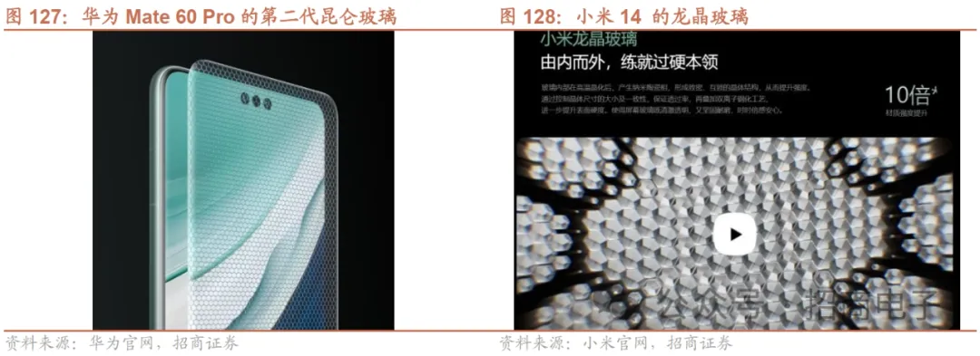 玻璃盖板方面,安卓市场竞争激烈,价格毛利承压严重,需依靠强大的制造能力获取利润,关注微晶玻璃在安卓市场的应用趋势;苹果格局或将迎来调整,潜在进入玩家有望获得弹性成长空间。苹果玻璃盖板领域,目前厂商主要有蓝思科技(一供)、伯恩(二供)、比亚迪电子(22年中进入,中山工厂),23-24年信濠光电亦有望凭借自动化能力和优秀的良效率成功进入苹果供应链,并与立讯体系产生协同效应,中长期获得的份额以及利润弹性空间非常值得期待。而安卓市场,由于需求不足,且玻璃盖板整体产能过剩,导致竞争尤为激励,价格持续下杀,多数安卓玻璃盖板厂商出现较明显的亏损。目前安卓厂商在玻璃盖板的强度、透过率和耐磨性方面持续升级,如华为的第二代昆仑玻璃、小米的龙晶玻璃等,也推动了手机玻璃盖板的ASP的回升。