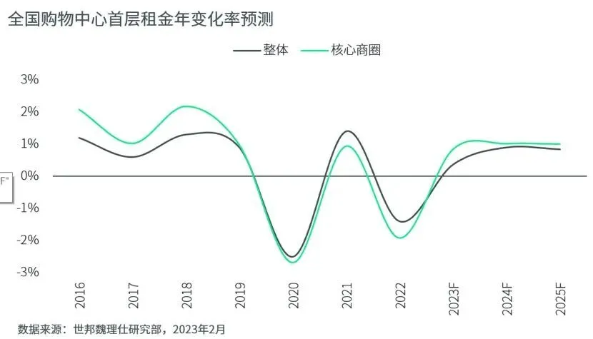 同时,随着消费市场回暖,同步推动优质零售物业需求反弹。世邦魏理仕预计,2023年全国主要城市优质零售物业新增供应将突破800万平方米。分区域来看,未来三年仅有16%的新项目位于核心商圈,基于可租面积的稀缺性和品牌强劲的扩店意愿,全国18个主要城市核心商圈的租金有望在2023年实现0.9%的同比增长。整体市场方面,购物中心平均租金将于2024年企稳回升。