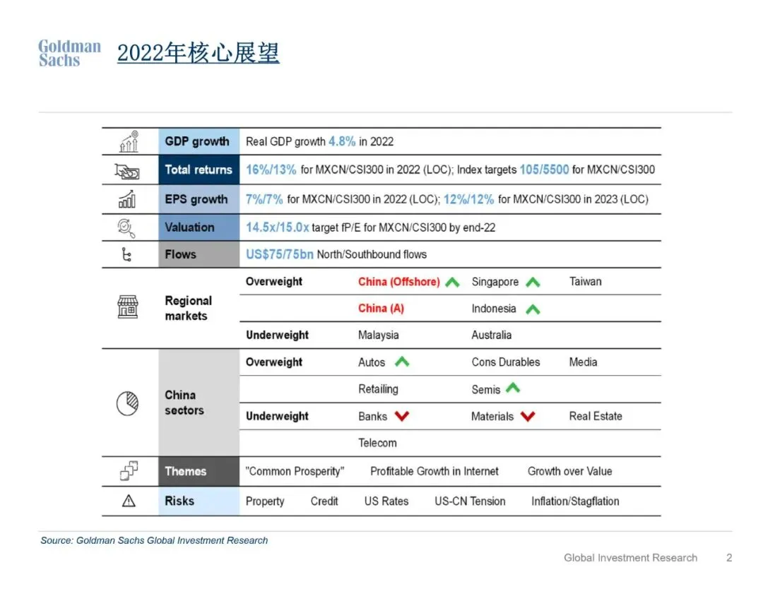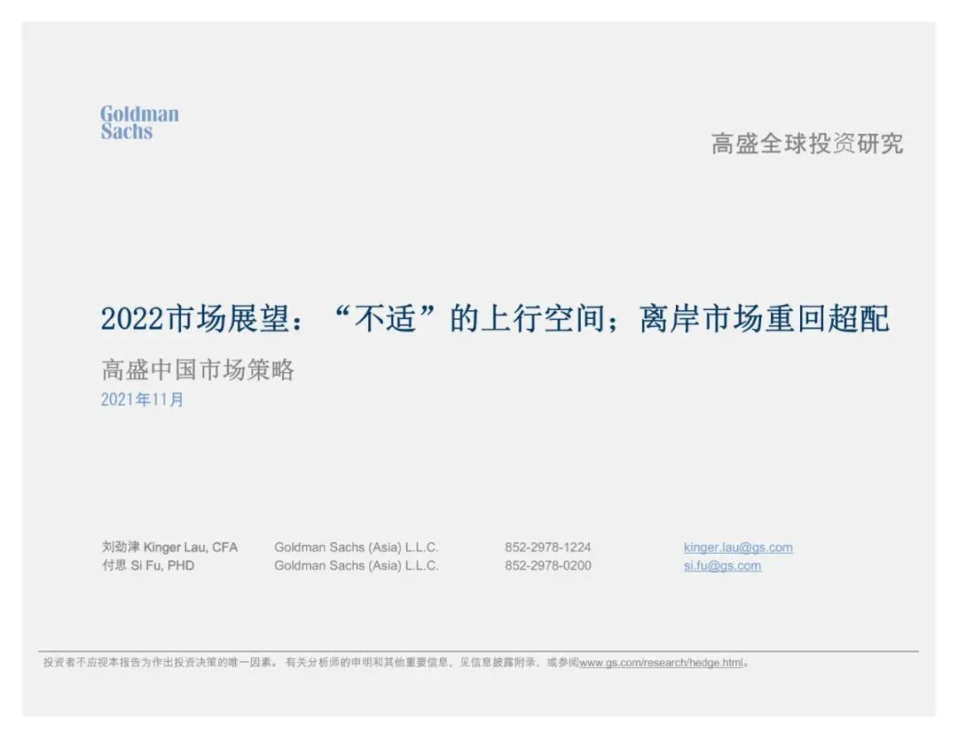 高盛称,2022年中国市场将迎来具有挑战性的宏观环境,预计受房地产市场长期去杠杆化、疫情严格防控、出口触顶回落、上游涨价和其他明显的结构性逆风影响。“但所有东西都有价格,而中国市场的价格看起来很有吸引力。”