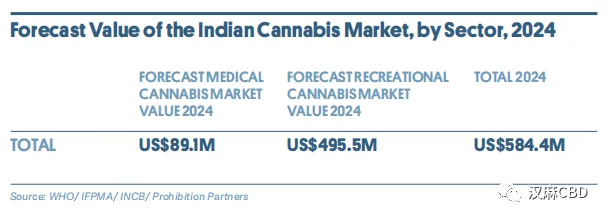 在西方市场,娱乐大麻预计在市场预测方面优于医用大麻,但在亚洲,情况可能正好相反。2024年市场估值为27亿美元,合法的娱乐大麻预计在同一年不到医药市场价值的一半。然而,如果大麻在印度等国家娱乐合法化,市场预测将大大提高。假设娱乐大麻使用率与目前的估计保持不变(中国为0.4%,香港为0.3%,澳门为0.5%),亚洲娱乐大麻市场可能价值约18.6美元。但由于对持有、种植和贩运毒品的严厉惩罚,亚洲国家不太可能接受娱乐大麻。也有可能的是,随着亚洲市场的成熟化和政府越来越自信,人们对大麻的态度转变将再次改变该区域的立法进程。