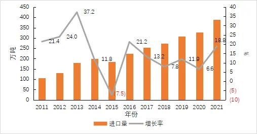 随着奶牛养殖机械化水平提升,生产技术效率提高,预计奶牛年均单产达8.8吨,生鲜乳产量将增至3979万吨;国民科学健康饮奶理念形成,奶类消费迎来增长契机,预计2022年奶类消费增至6374万吨,比上年增长6.8%;人均消费达到45.1千克。国内产能加速增长及全球奶制品供应导致的价格上涨,将均对进口形成一定抑制,预计2022年奶制品进口增幅放缓,全年进口量折合生鲜乳2407万吨,比上年增长8.9%。