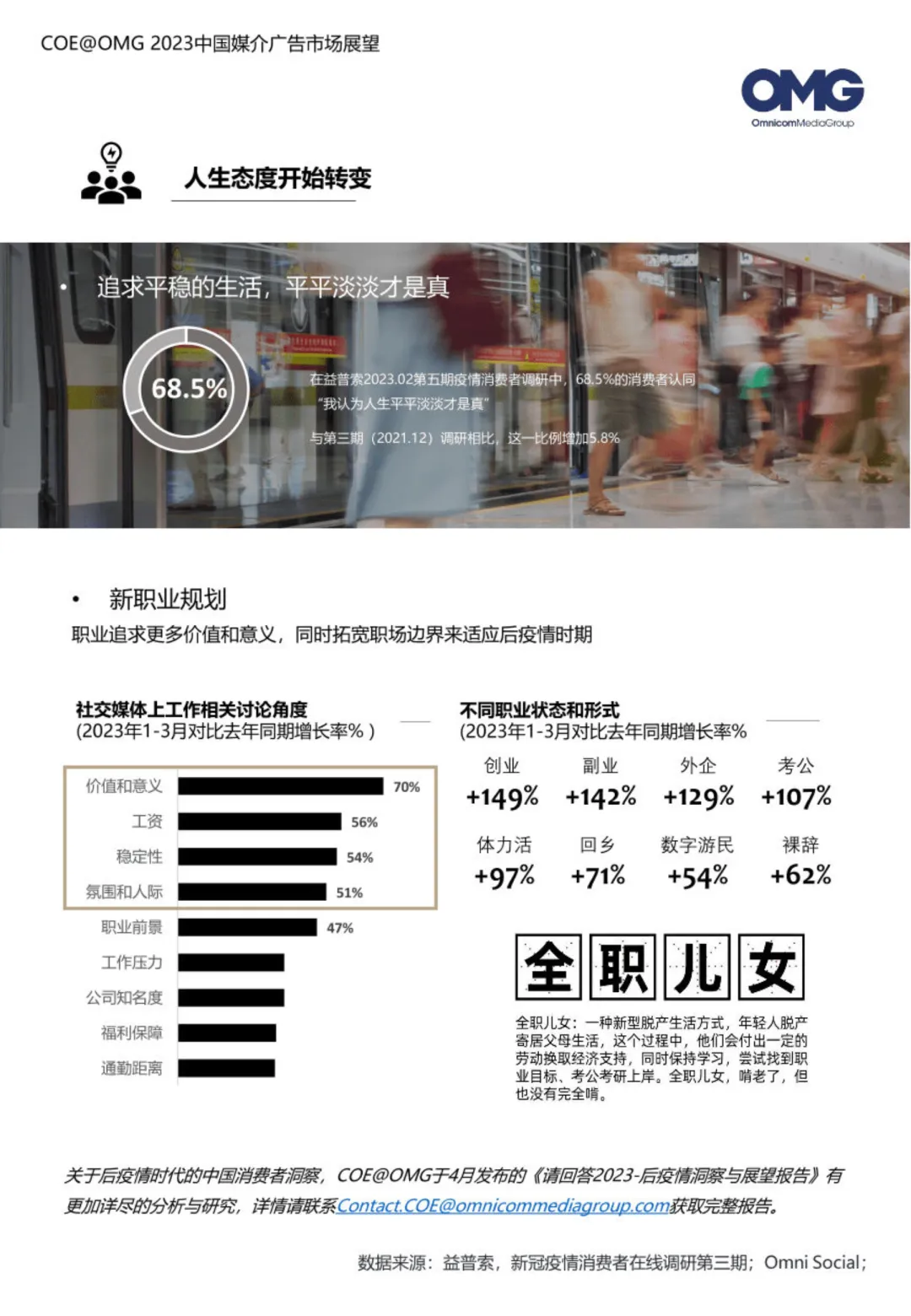 报告显示,经济企稳回升和服务业回暖对于媒介广告市场的发展产生了积极的影响。消费者也在重塑全新的生活方式,并且在谨慎中积聚乐观,平淡中追求多元价值。这给媒介广告行业带来了新的机遇,同时也需要更高的洞察力和判断力。