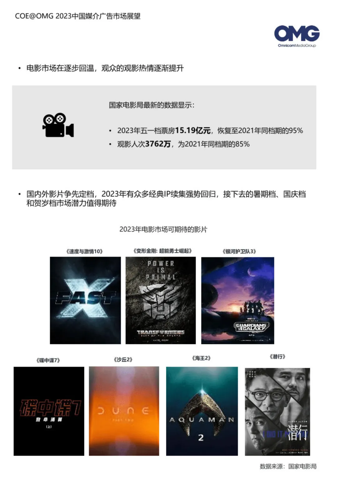 户外与影院媒体也逐步回归人气。特别是旅游与交通场景下的户外媒体,以及暑期、国庆与贺岁档的潜力影片,都将成为广告行业发展的新焦点。