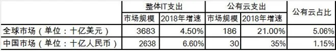 对比早些时候Gartner发布的全球整体IT市场规模报告,我们发现,公有云占整体IT市场的比例,全球为5.06%,而中国为 1.15%。