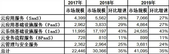 中国市场未来两年的IaaS增速高达43%,而全球市场2018年的增速也高达36%,随后的增速将逐步降低。但其增长速度仍然将远超其他细分公有云市场。