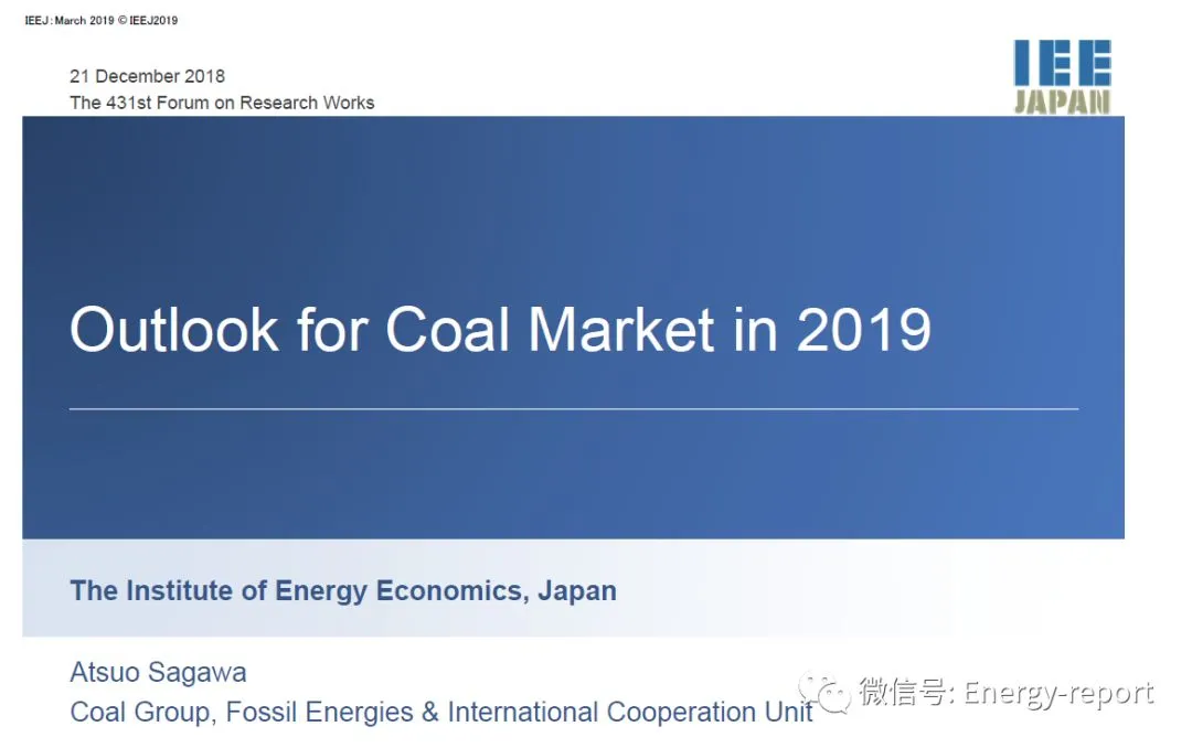 2018年12月,日本能源经济研究所发布《2019煤炭市场展望》,在此ERR能研微讯研究团队对报告的关键发现进行了翻译,分享给大家,欢迎转发扩散!