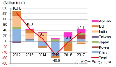 ·煤炭需求在2017年出现上涨之前一直呈现出下降的趋势,2019年将主要在亚洲(包括印度和东盟)继续增加,同时伴随着煤炭进口的扩大。