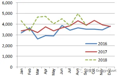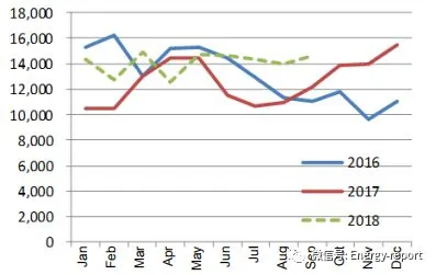 主要国家的动力煤进口情况:动力煤进口主要是由中国和印度推动。中国在2014年和2015年减少了煤炭进口后2017年再次增加进口;东盟在2016、2017年大幅度增加了动力煤进口;欧盟自2014年以来煤炭进口出现下降。在2018年的前3季度,印度、中国和东盟动力煤进口量在增加,与此同时欧盟的进口量持续在衰减。