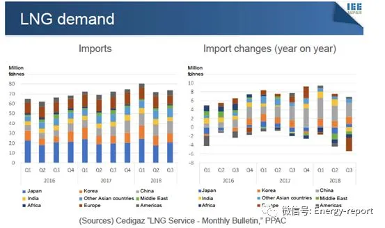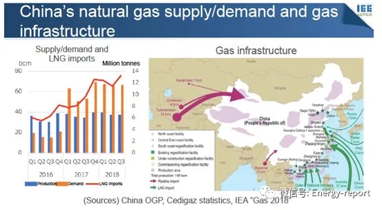 2018年前三季度的天然气需求量增加了33bcm,同比增长19.5%,达到200bcm。LNG进口量增加了1130万吨,增长44.2%,达到3680万吨。