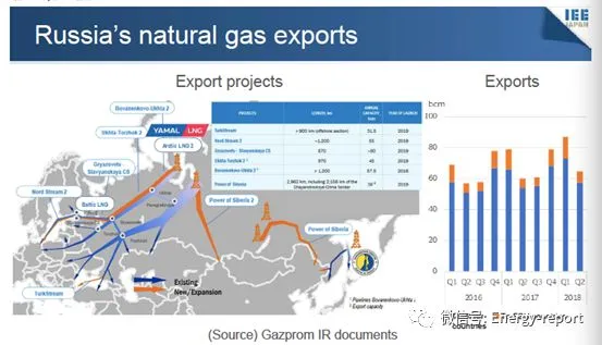 2019年,俄罗斯计划增加125bcm管道天然气出口能力,包括Turkstream、North stream 2和西伯利亚电力。