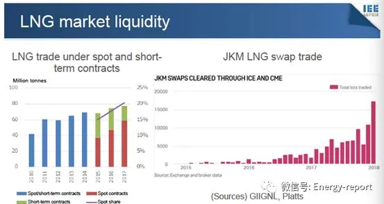 2018年上半年JKM液化天然气互换量增至78000批(约1700万吨,占同期东北亚液化天然气需求的17%),表明液化天然气市场流动性不断增加,但基准价格尚未制定。