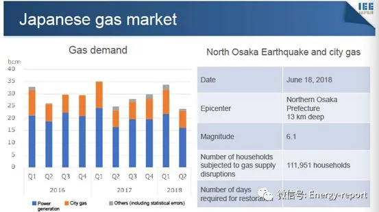 2018年上半年需求量同比下降2.2bcm,降幅为3.7%,至58bcm。由于核电站的重新启动和异常温度,发电和城市燃气服务的天然气需求量均下降。北海道东部伊布里地震。