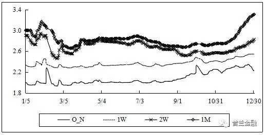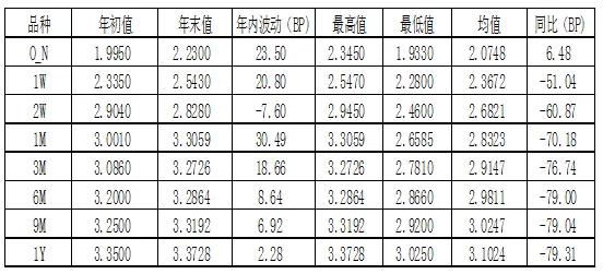 2016年资金市场利率整体“两头高中间低”的态势,各季度走势如下: