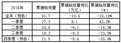 2016年票据签发量大降,预计签发量为18.4万亿左右;明年1月起300万以上的票据均要开电票,此外还有很多银行没有接入ECDS系统,电票的代理接入还没有放开,这些都会影响到明年的票据签发市场,虽然经济向好,企业的融资需求有所提升,但是预计明年的签发量仍然会小幅下降至17万亿左右。