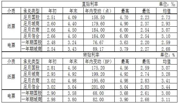 票据利率呈现两头高,中间低的走势:票据案件接连爆发、机构自查、机构转贴受限,票据利率年初大幅上行;大行领跌,票据资产受到机构追捧,二三季度票据利率震荡并录得近6年多的新低;工行爆发电票大案,代理接入被暂停,资金面持续紧张情绪传导至票市,四季度票市利率以震荡上涨为主;