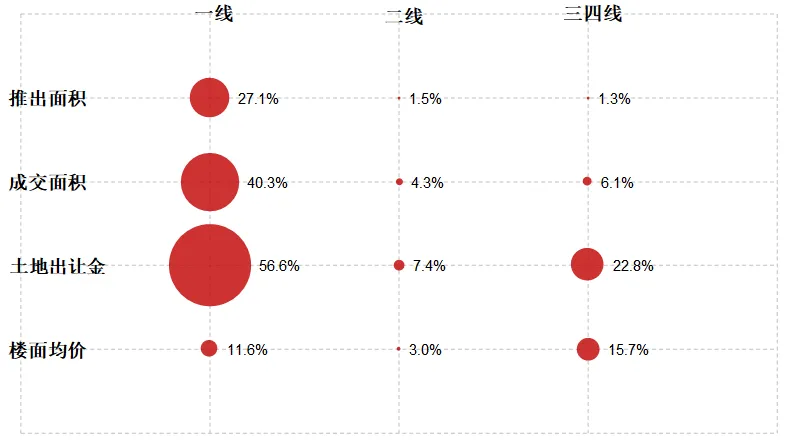 图:2020年1-11月各线城市住宅用地推出和成交相关指标同比变化