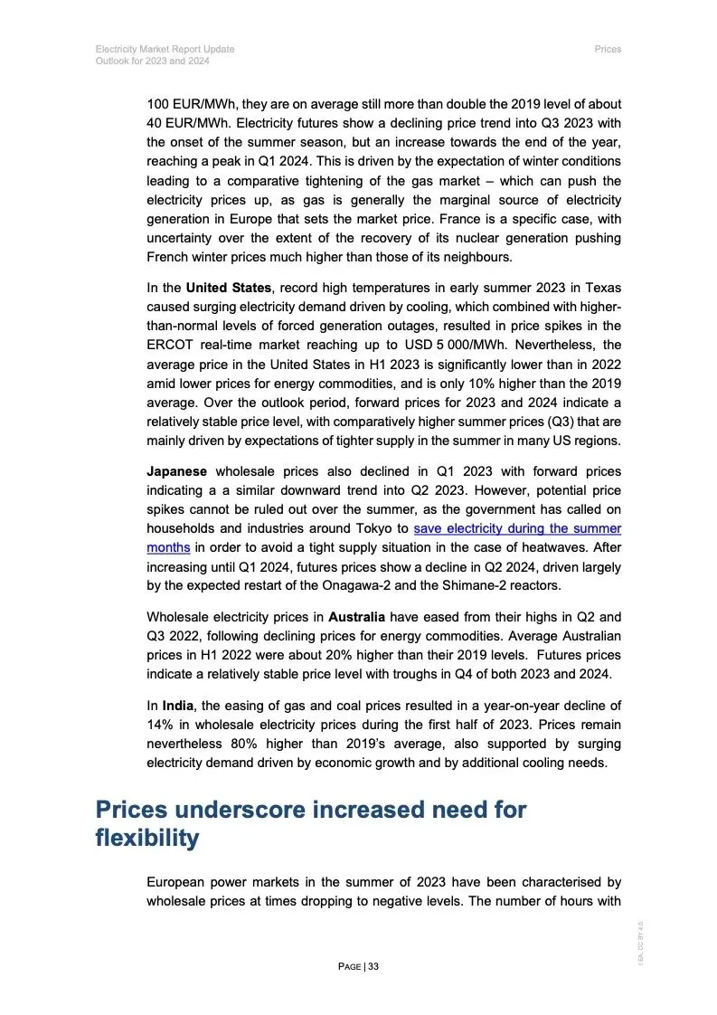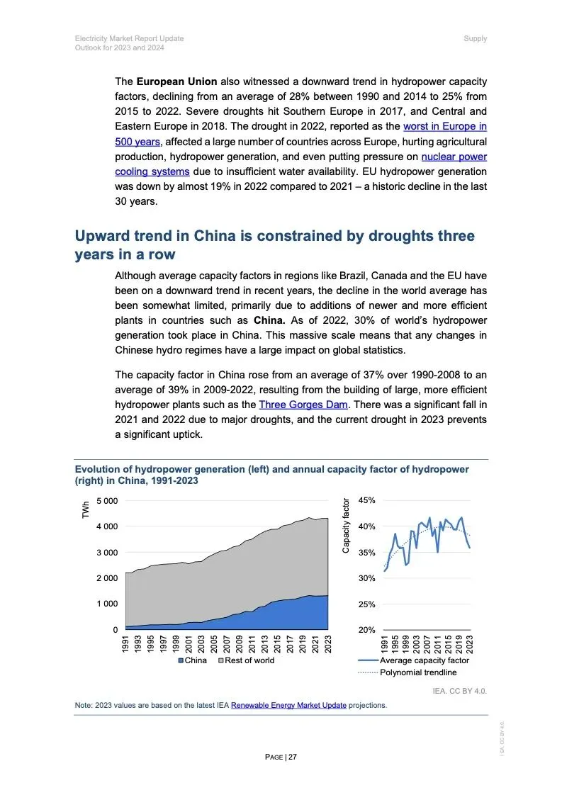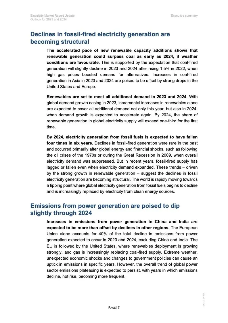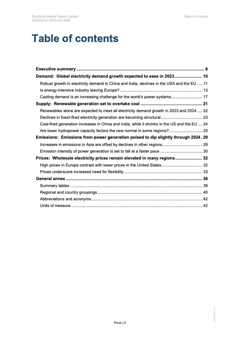 本报告提供了有关全球电力需求、供应和排放的2022年最新数据,以及对截至2024年的分析预测。报告对中国、美国、欧盟和印度的电力需求变化情况及其驱动因素进行了分析,并指出,随着越来越多的可再生能源应用于发电,全球发电碳排放量将略有下降。