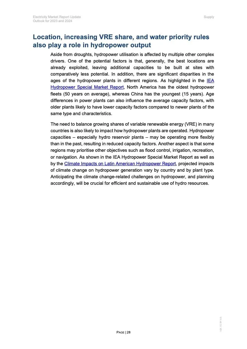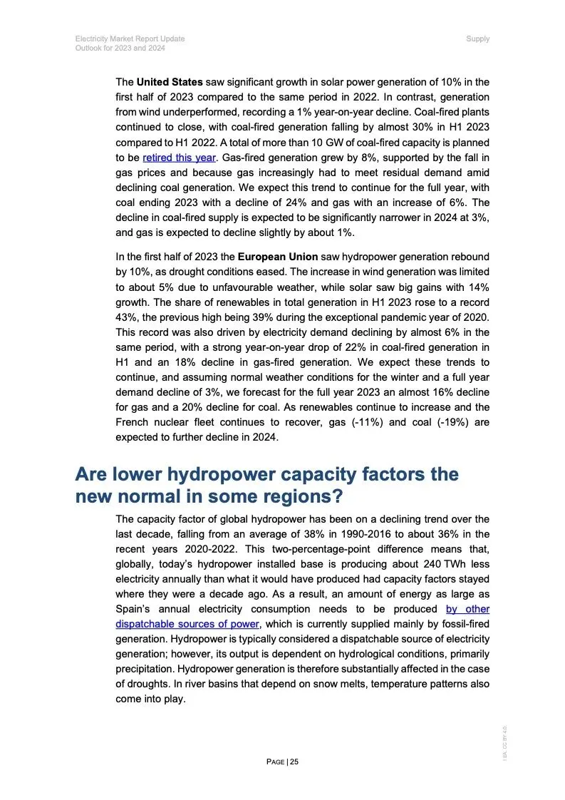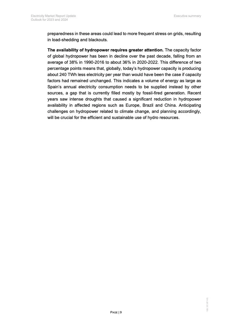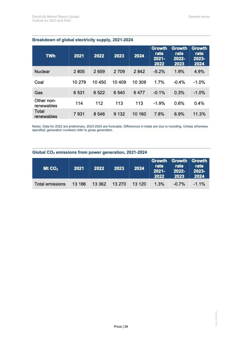 全球电力需求增长预计将在2023年放缓,然后在2024年加速。预计2023年的需求增长率为1.9%,低于2022年的2.3%和2015-2019年期间2.4%的平均年增长率。不过到2024年,随着全球对经济前景预期的改善,全球电力需求增长预计将反弹至3.3%。