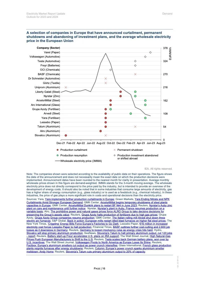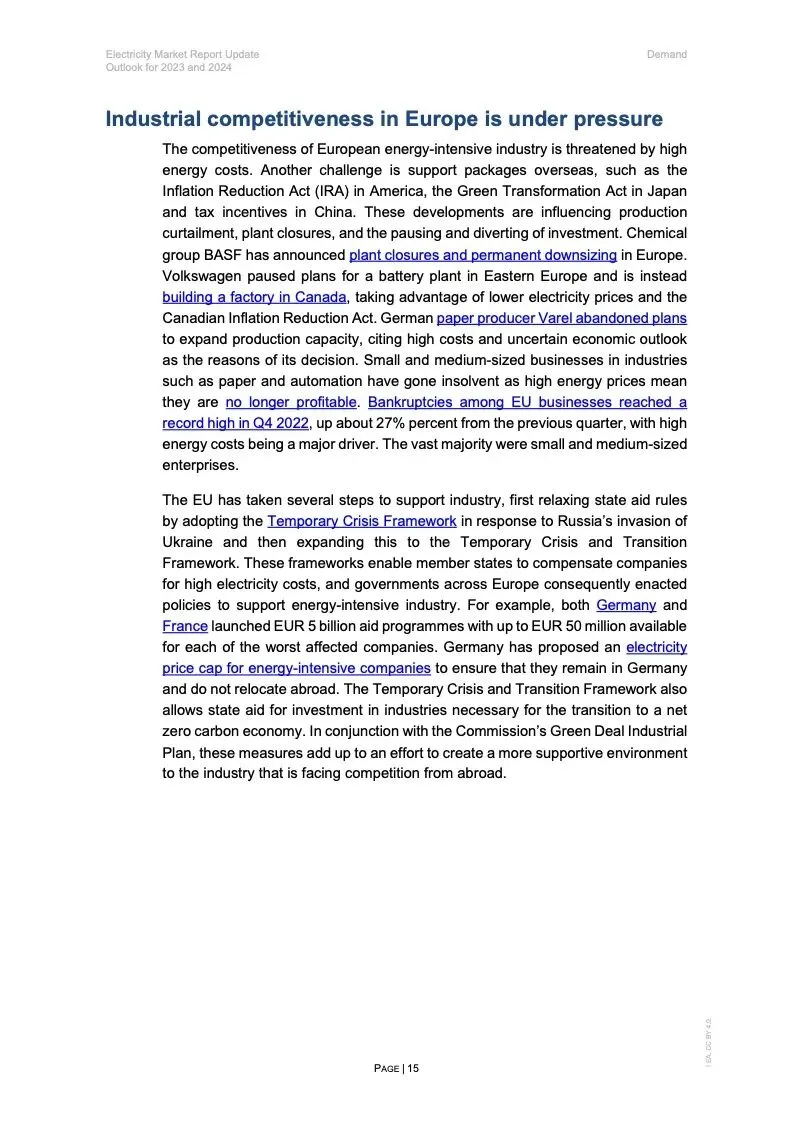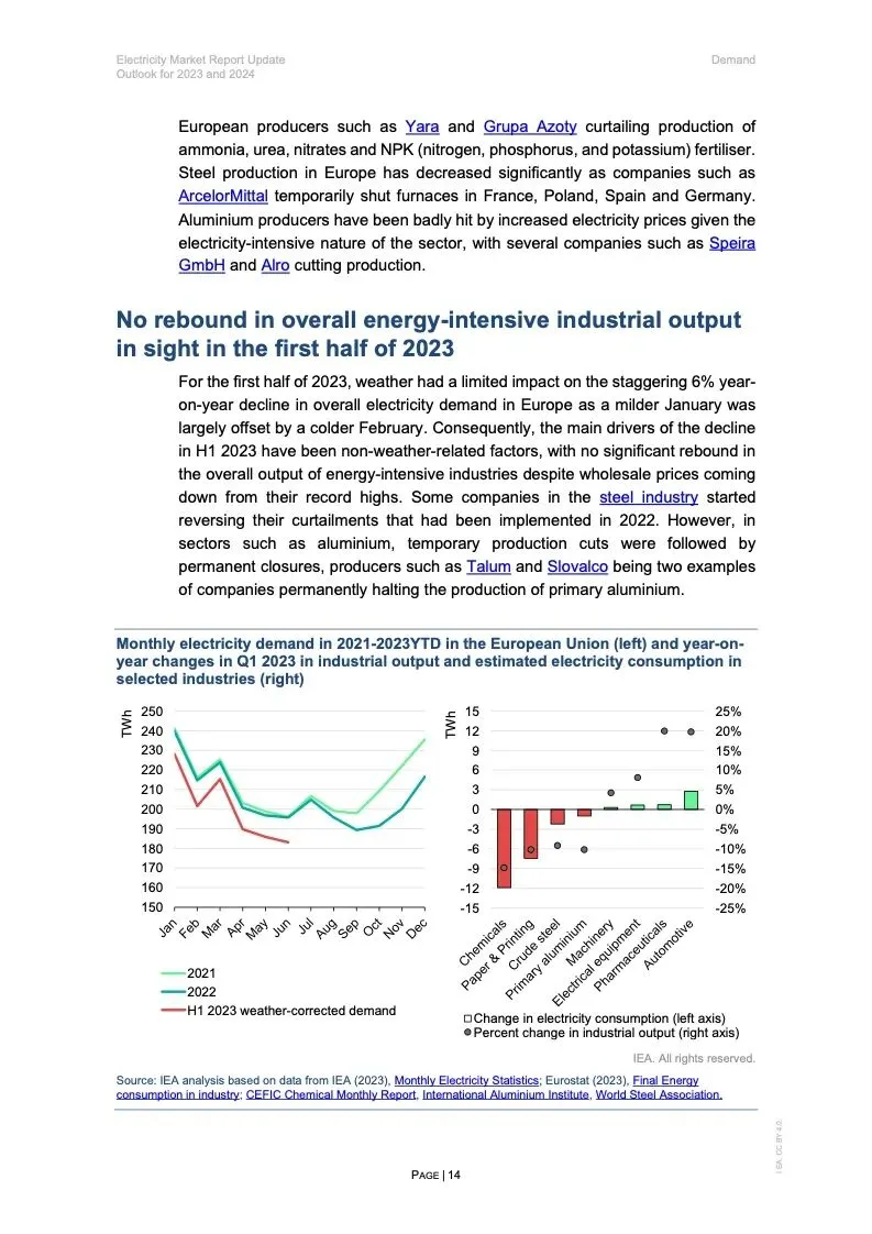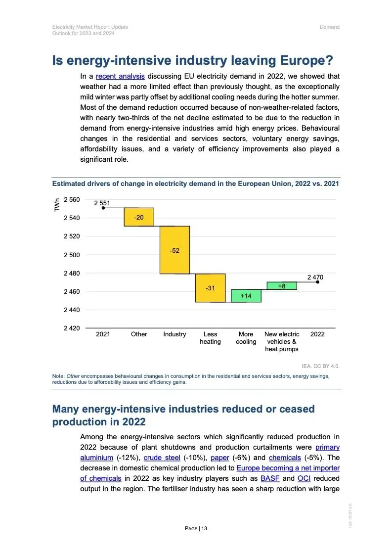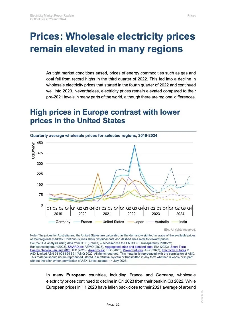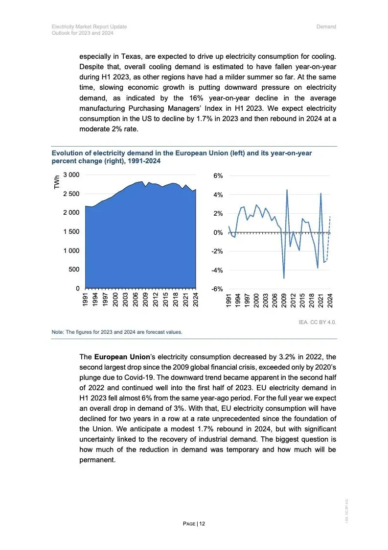 从不同国家和地区来看,欧盟的电力需求将下降至20年以来的最低水平。2022年,欧盟电力需求下降了3.2%,2023年将继续降低3%。2023年,美国电力需求预计将下降1.7%,日本将下降3%。