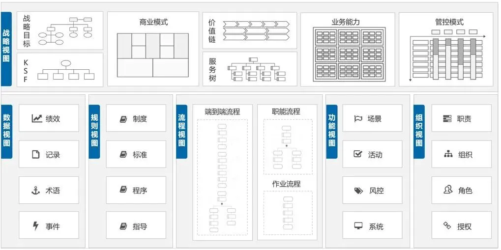 数字化治理:利用大数据和流程还原技术,获取流程的实际运行数据,并与虚拟的“孪生流程”模型对接,使得“孪生流程”也动起来。同时,构建业务流程的健康指标体系,应用大数据、云计算、人工智能等技术,实现流程体系的趋势预测和实时优化分析。