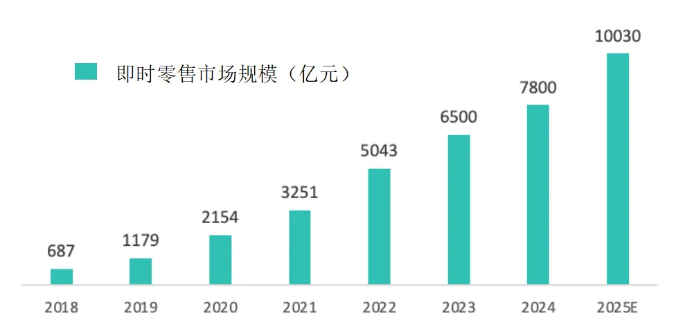 图2:中国即时零售市场规模及预测(2018-2025E)