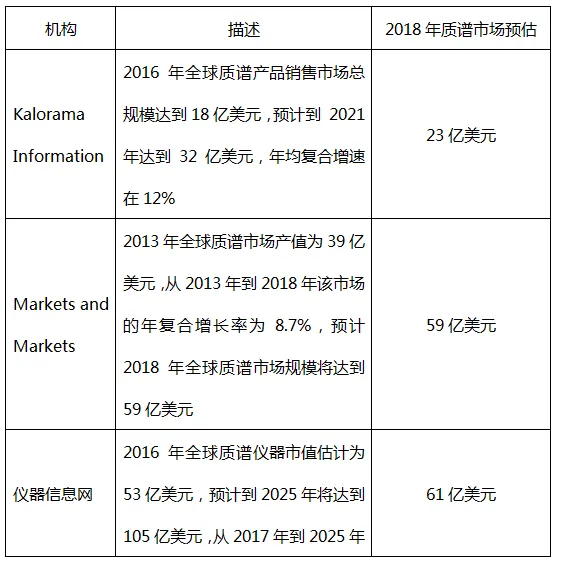 全球范围内的多家研究公司及媒体主导了对质谱市场的统计和研究: