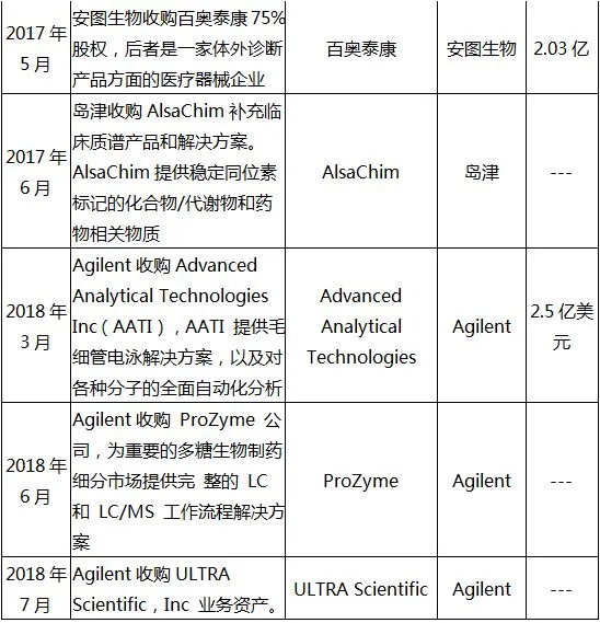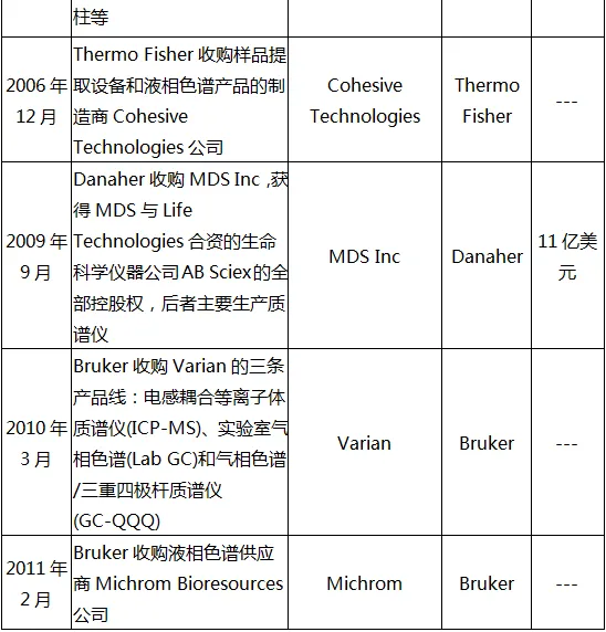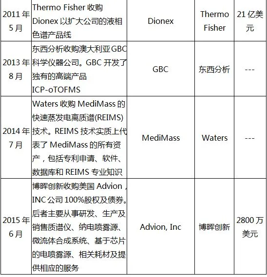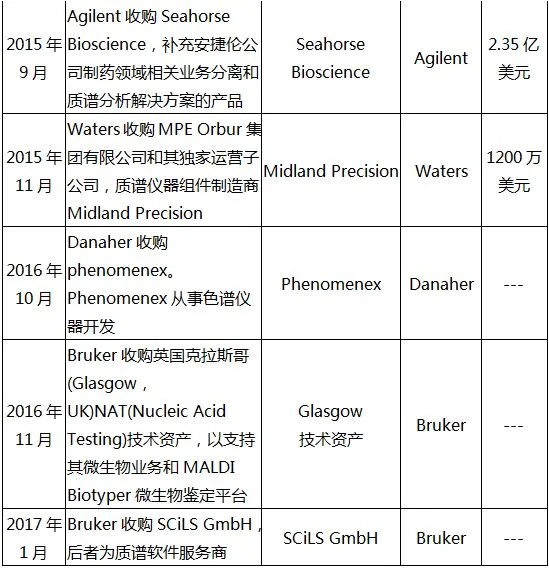 2015年及之后,质谱仪行业各大寡头频频并购相关企业发展自身产品线,意图抢占市场先机。